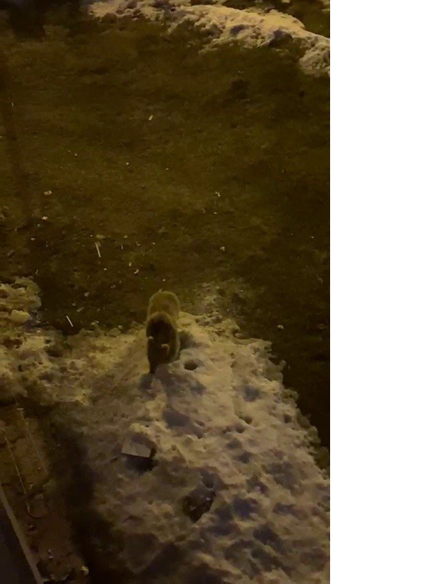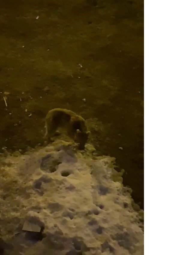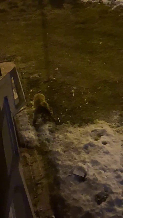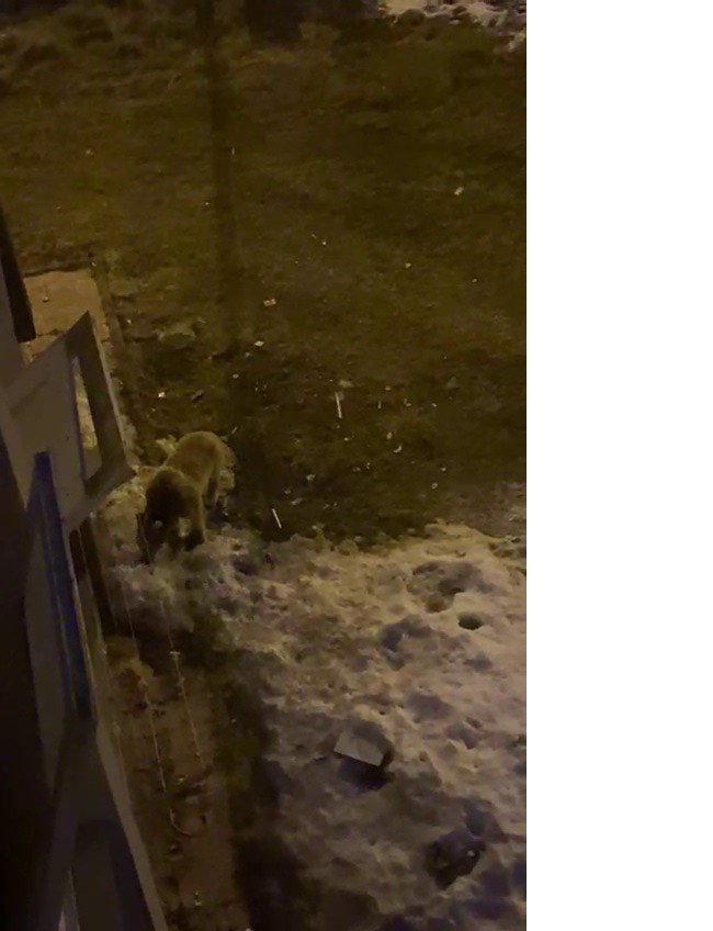 Bir apartman kenarında yiyecek arayan yavru ayı, cep telefonu kameralarına yansıdı. Yavru ayıyı görüntüleyen vatandaş, “Ayılar yiyecek aramak için evimizin yakınına kadar geliyor. Ormanlık alandan evlere kadar geliyorlar” diye konuştu.
