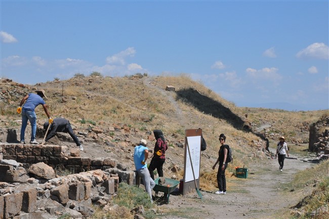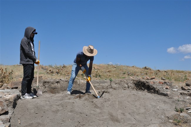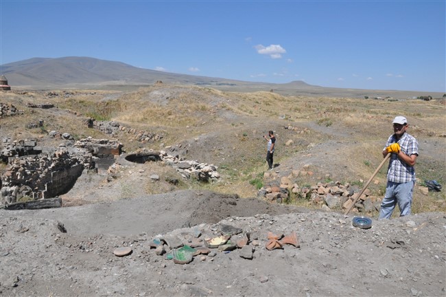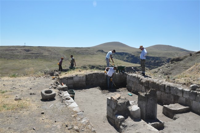 Kazı çalışmaları sırasında sırlı ve sırsız seramik parçaları, süslemeli, motifli seramiklerin de mevcut olduğunu belirten Aslan, “Ayrıca Bagratlı, Selçuklu ve İslami döneme ait sikkelerde bulunmaktadır. Selçuklu dönemine ait olduğunu düşündüğünüz bir meslek mescit kalıntısı da ortaya çıkardık. Tabii kalıntı halinde beden duvarları ve mihrabının bir kısmı sağlam olarak gün yüzüne çıkarmış olduk. Çalışmalarımızı Kültür Varlıkları ve Müzeler Genel Müdürlüğünün ruhsatı ve finansmanı ile sürdürmekteyiz. Tabi bunun yanında Serhat Kalkınma Ajansı da çalışmalarınıza çok büyük bir ölçüde proje desteği sunmaktadır. Çalışmalarımız 10 Eylül tarihine kadar devam ettirecektir” şeklinde konuştu.