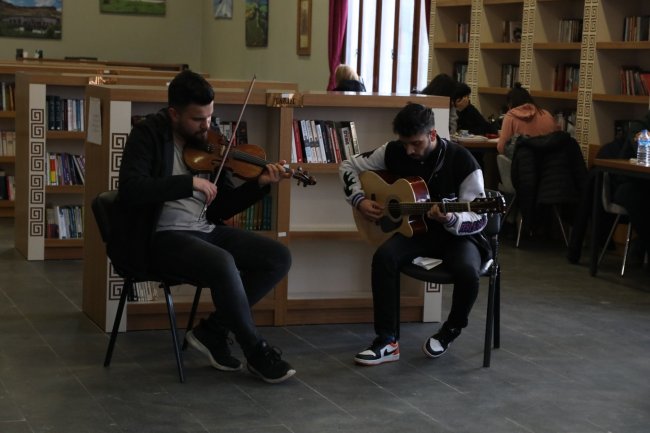 28 Mart ile 3 Nisan tarihleri arasındaki Kütüphaneler Haftası programı kapsamında Kars Belediyesi Aynalı Köşk Sanat Merkezi ve Bilgi Evinde Kafkas Üniversitesi Doç. Dr. Sibel Polat’ın kurmuş olduğu yerel bir topluluk olan Kars-ı Dilbeste topluluğu üyelerinden Gökcan Taşkan ve Burak Bahçe tarafından müzik dinletisi gerçekleştirildi.
