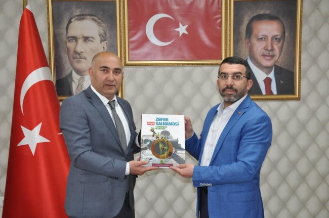 Yazdığı mektubu Başkan Çalkın’a teslim eden Başkonsolos Nuri Guliyev, “Hem bayramlarda hem de anım günlerimizde hep yanımızda oldunuz. Özellikle belirtmek istediğim 44 günlük savaşımız esnasında ki, zaferle sona erdi. Her gün yanımızdaydınız. Savaşın tam başından itibaren savaşın 44 günün de yanımızdaydınız. Zaferden sonra da kutlamalarda ilk siz vardınız. Ve bundan sonra ki bütün her şeyimizde Adem Çalkın AK Parti İl Başkanı olarak hep yanımızdaydı. Devletimizin adına yaptığımız bütün programlarda hep yanımızdaydınız. Özellikle bunu belirtmek istiyorum ki hep arka planda da olsa desteğini gördük. Geçen 6 yılda ilk sıradasınız. İki devlet adına yaptıklarınız gurur vericidir. Bizim açımızdan büyük bir manevi değeri vardır. Bu manevi değeri en azından bir teşekkür yazımızla iletmek istedik” dedi.