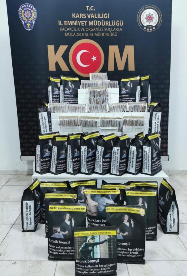 Kars’ta polis ekiplerince Kars merkez ve 4 ilçede eş zamanlı şafak operasyonu düzenlendi. Operasyonda 15 ayrı adreste 30 kişi gözaltına alınırken, yaklaşık piyasa değeri 1,5 milyon lirayı bulan kaçak tütün ve tütün mamulleri ele geçirildi.