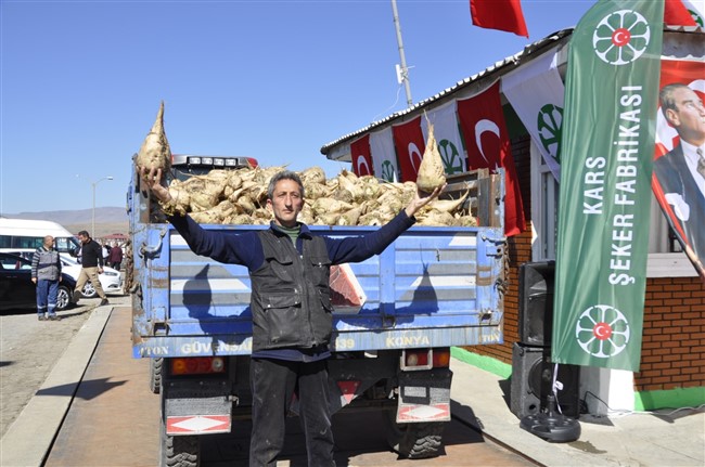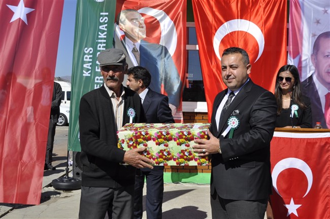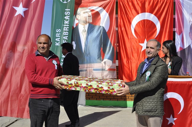 Fabrika bahçesinde düzenlenen törende fabrika ilk pancarı getiren ilk 3 üretici olan Ali Rıza Öztekinli’ye, Muzaffer Keskin’e ve Ahmet İzzetoğulları’na Vali Türker Öksüz, Kafkas Üniversitesi Rektörü Prof. Dr. Hüsnü Kapu ve Cumhuriyet Başsavcısı Soner Aygün çeşitli hediyeler ve plaket verdi.