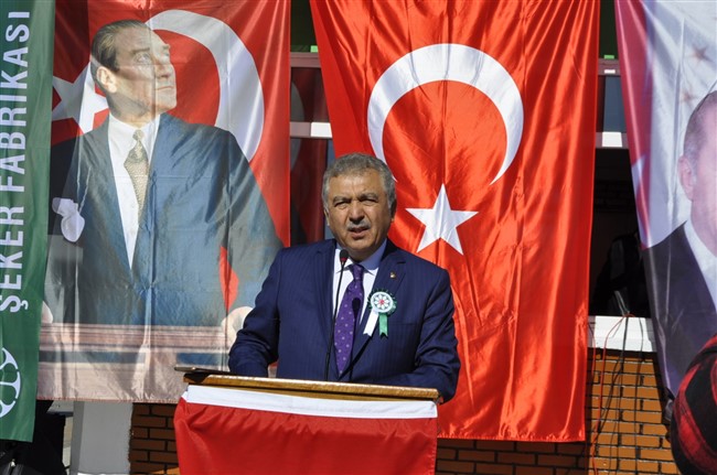 Türkiye Şeker Fabrikaları AŞ Genel Müdür Yardımcısı Selim Yücel ise yaptığı konuşmada şunları söyledi; “Ülke şeker sanayimize 30 Ekim 1993 tarihinde katılan Kars Şeker Fabrikamızın 26. Pancar alım kampanyası törenine katılarak bizleri onurlandırdığınız için teşekkür ediyorum. Hammaddesi şeker pancarının oluşturduğu “şeker sanayi” tarıma dayalı sanayilerin başında gelmesinin yanında, ülkemizde tarım-sanayi entegrasyonun en başarılı örneğini teşkil etmektedir. Türkiye’nin sosyo-ekonomik yapısı içerisinde ülke nüfusunun yaklaşık yüzde 10’unun bu sektörden geçimini sağladığı düşünüldüğünde yan ve alt sanayi dalları ile birlikte oluşturduğu katma değer, şeker pancarı ve şeker sektörünün önemini ortaya koymaktadır. Ülkemizde şeker fabrikalarının kurulmasının ana hedefi; ülkemizin şeker ihtiyacının karşılanması yanında, tarımı geliştirerek çiftçiyi kalkındırmak olmuştur. Malumlarınız üzere şeker pancarı ve tarımı; ülkemiz tarımındaki tüm yeniliklerin uygulanmasında öncü olması, münavebe bitkisi olması nedeniyle kendinden sonraki ürünlerde verim artışı sağlaması, yaş pancar posası ve melası ile önemli bir yem bitkisi olması, havaya verdiği oksijen ile çevre dostu bir bitki olması, taşımacılık sektörüne, başta tarım alet ve makinaları olmak üzere birçok sanayi kolunun gelişmesine ve gübre, ilaç gibi girdilerin kullanımı ile de endüstriyel sektöre önemli katkılar sağlamasından dolayı ülkemiz tarımının vazgeçilmezidir. Çok değerli pancar üreticilerimiz; binbir meşakkatle üreterek bugünlerde fabrikalarımıza teslim ettiğiniz pancar için sayın Cumhurbaşkanımız, alın terinizin ve emeğinizin karşılığını verme konusundaki hassasiyetiyle 2019 yılı yüzde 16 polar şeker ihtiva eden firesi düşürülmüş net 1 ton A kotası şeker pancarı baz alım kesin fiyatını 300 TL olarak açıklamıştır. 300 TL/ton olarak açıklanan şeker pancarı fiyatı; 2018 yılında 235 TL/tok olan alım fiyatının yüzde 28, 2019 yılı için hedeflenen enflasyon oranının 12 puan üzerinde olup, siz pancar üreticilerimizin enflasyonun üzerinde gelir elde etmeleri sağlanmıştır. Ülkemizde şeker sektörünü tehdit eden unsurların başında Nişasta Bazlı Şeker (NBŞ) ve Yüksek Yoğunluklu Tatlandırıcılar (YYT) gelmektedir. Cumhurbaşkanlığı sistemine geçmeden önce NBŞ kotası ülke toplam A kotası şekerin (2.700.000 ton) yüzde 10’u iken, Cumhurbaşkanlığı sistemine geçtikten sonra 7103 sayılı KHK ile bu oran yüzde 5’e düşürüşmüş, 2019 yılı Nişasta Bazlı Şeker kotasını sayın Cumhurbaşkanımızın yüzde 50 oranında azaltarak yüzde 2,5’e (67.500 ton) indirmiştir. Bundan dolayı, pancar üterim kotasındaki yaklaşık 1.500.000 tonluk artış üreticilerimize ilave pancar kotası olarak yansıtılmış ve böylece pancar üreticilerimizin daha fazla gelir elde etmeleri sağlanmıştır. Temel gıda maddesi olan şeker, tarım ve sanayinin iç içe olduğu, son derece hassas dengelerin korunmasını gerektiren stratejik bir üründür. Sektörel faaliyetlerin yürütülmesinde bir yandan pancar üreticilerinin diğer yandan da şeker tüketicilerinin menfaatlerinin gözetilmesi gerekmektedir. Bu nedenle ülke şeker politikası doğrultusunda, pancar üreticimize emeklerinin karşılığının verilmesi yanında tüketicilerimiz için de kaliteli ve ucuz şeker temini hepimiz açısından önem arz etmektedir. Ayrıca, düşük maliyet ile şeker üretimi NBŞ tüketiminin azaltılmasında önemli rol oynayacaktır. 2018 yılında yapılan özelleştirmeler sonucu Türkşeker’deki 25 şeker fabrikasından 10’unun satışı gerçekleşmiştir. Türkşeker halen; kotadaki yüzde 36’lık payı, 93 yıllık mazisi, marka değeri, kalifiye personeli, deyimi, bilgi birikimi, yaygın teşkilat yapısı ile ülkemiz şeker sektöründe öncü ve lider olma özelliğini devam ettirmektedir. Hedefimiz kıt kaynaklarımızı en verimli şekilde kullanarak, verimlilik ve karlılık ilkeleri doğrultusunda, gıda güvenliğinde taviz vermeden, müşteri memnuniyeti en üst düzeye taşıyarak, yüksek kalite ve verimlilik odaklı, çalışanlarımızın iş sağlığı ve iş güvenliğini gözeterek, çevreye duyarlı, asgari maliyet azami verimlilikle standartlara uygun kalitede şeker üretmektir. Ayrıca, fabrikalarımızda yaptığımız yatırımlar ve iyileştirmelere de rekabetçiliğimizi ve verimliliğimizi artırarak teknolojik gücümüzü yükseltmektir. Bugün Kars Şeker Fabrikamızın yeni üretim döneminde, sizlerle birlikte olmaktan büyük mutluluk duyduğumu tekrar ifade eder, tüm bu başarılarımızda ve geleceğe ilişkin hedeflerimizde desteklerini daima yanımızda hissettiğimiz herkese teşekkür ediyorum.”