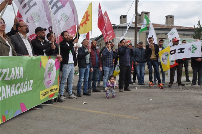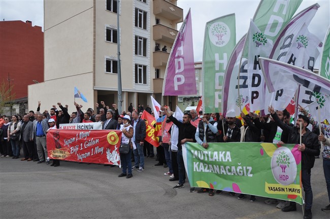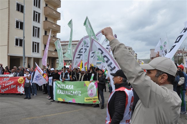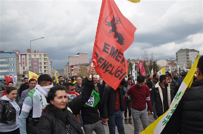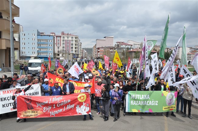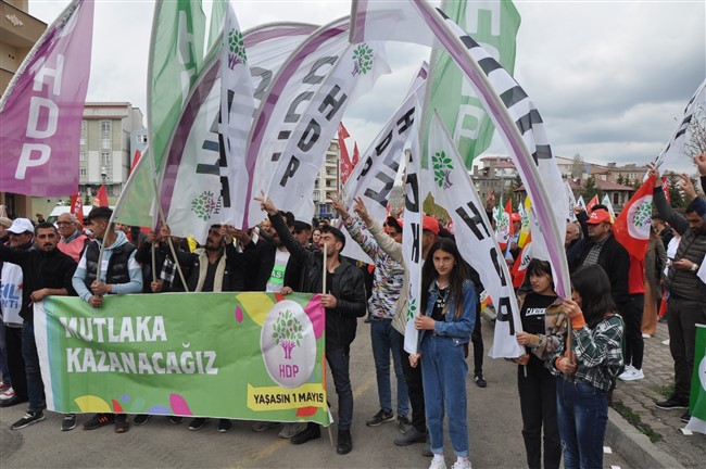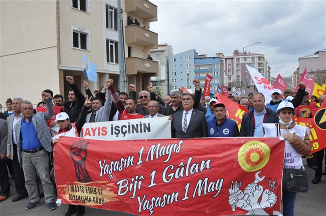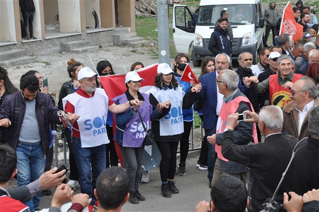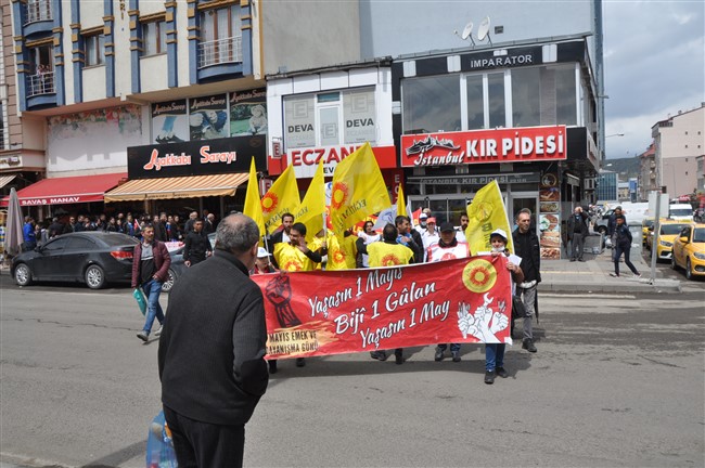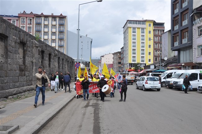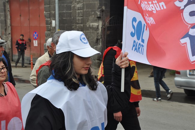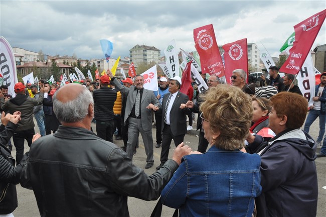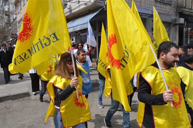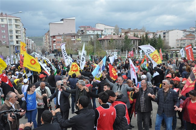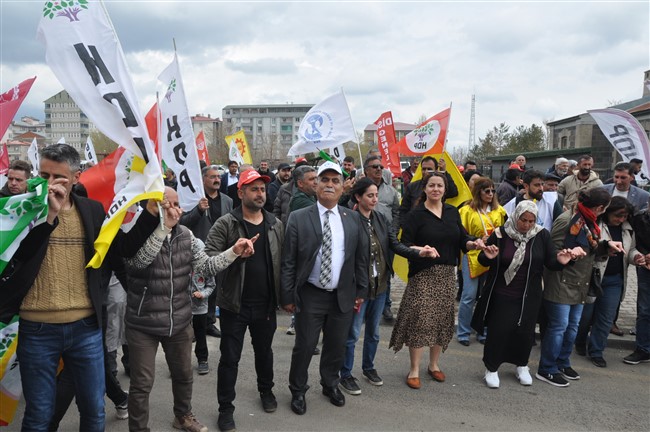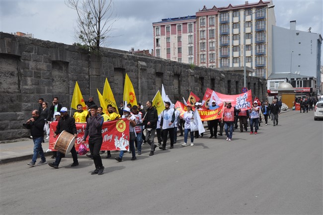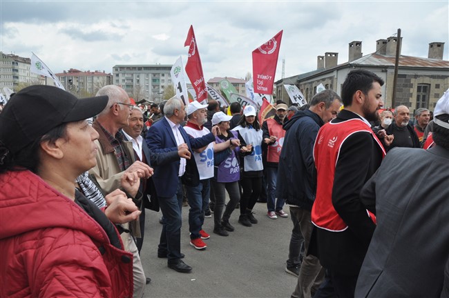 Eğitim Sen hizmet binası önünde bir araya gelen bazı siyasi partiler ve sivil toplum kuruluşları, Faikbey Caddesi ve Bahri Dağdaş Caddesinden yürüyerek Tren Garı’nın yanındaki miting alanına davul-zurna ve sloganlarla geldi.