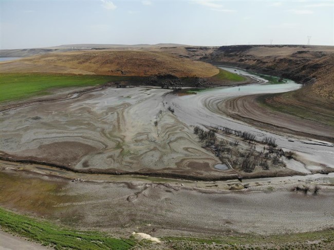 Kars’ta etkili olan sıcaklar ve baraj kapaklarının da açık olması baraj gölünün üst bölgelerinde suyun hızla çekilmesiyle bataklığa döndü. Büyük bölümü de kuruyan baraj gölü çölü andırıyor.