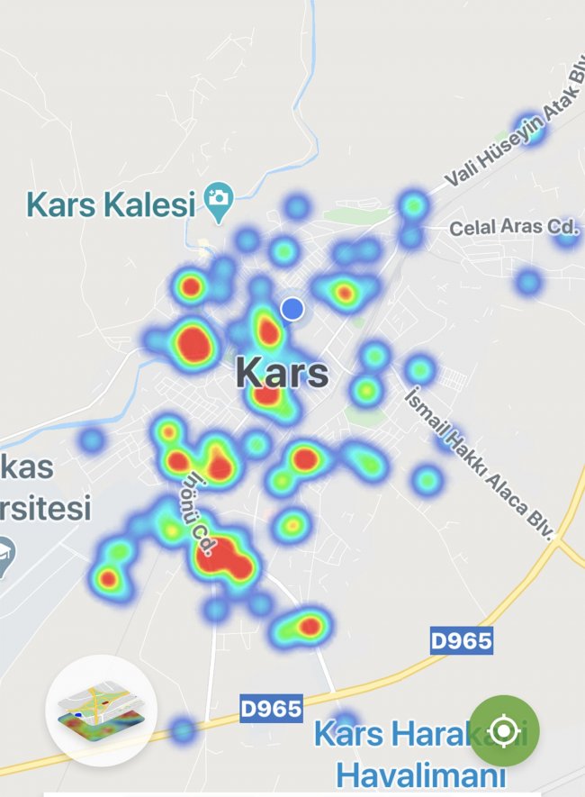 Sağlık Bakanlığı’nın ‘Hayat Eve Sığar’ uygulamasında Kars'ta korona virüs tablosu yeşilden kırmızıya dönüştüğü görülürken, kırmızıya dönen ve yoğunluğun yaşandığı mahalle, cadde ve sokaklarda dikkat çekti.
