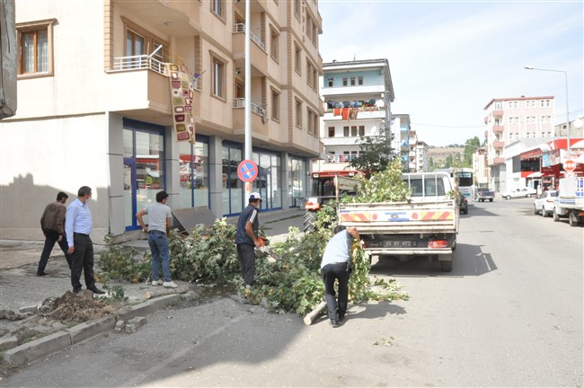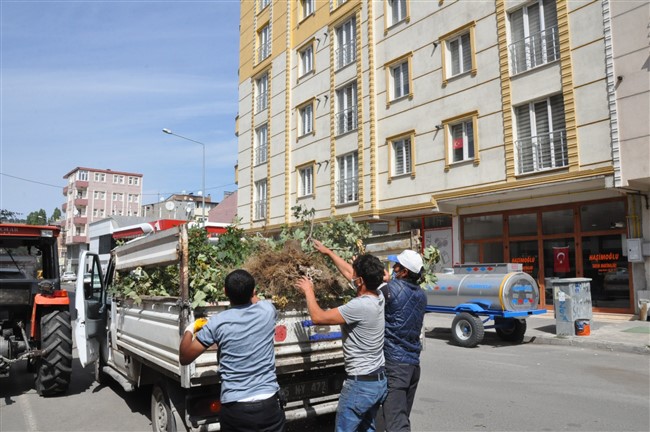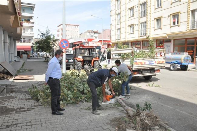 Olay yerine gelen Kars Belediyesi Park ve Bahçeler Müdürlüğü ekipleri ağacı keserek kamyonetle taşıdı.