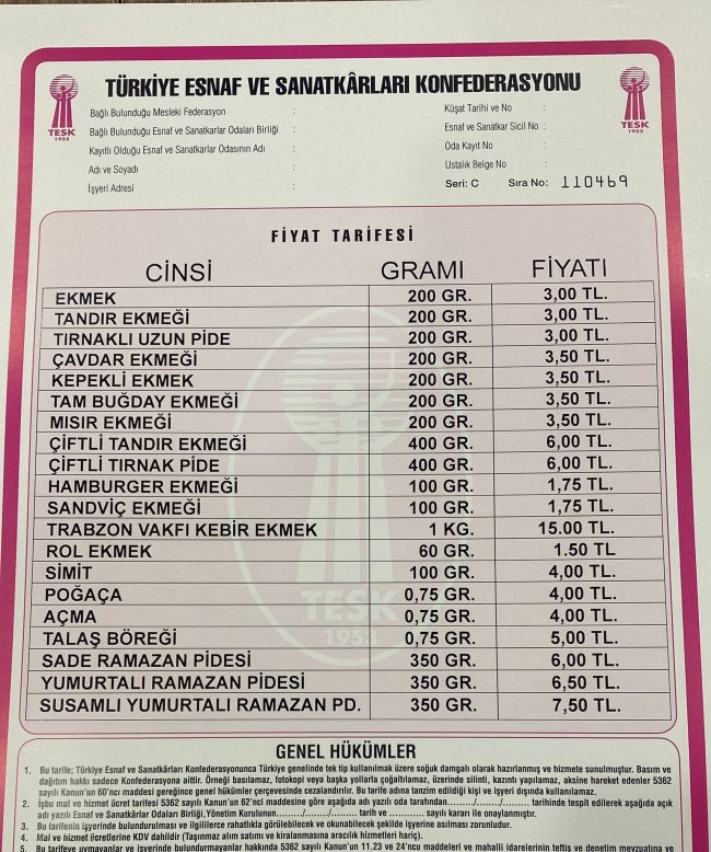 Kars’ta Fırıncılar ve Lokantacılar Odası tarafından ekmeğe zam yapıldı. 2,5 lira olan 200 gram ekmek 3 liraya satışa çıktı.