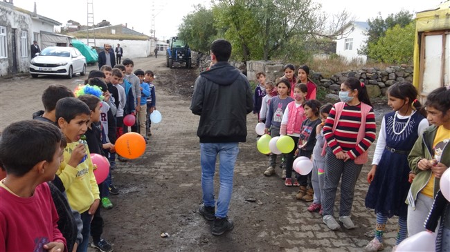 Kars’ta köy köy gezen grup, çocukların yüzünü güldürüyor