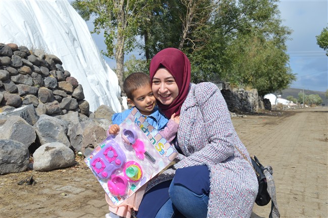 Ekibe teşekkür ettiğini aktaran Taşlıova, "Bugün köye gelip çocuklara oyuncak hediye ederek onları mutlu eden herkese çok teşekkür ediyoruz. O kada şey gördük köy köy gezip oyuncak hediye edenleri ilk defa görüyoruz, çok güzel bir şey Allah razı olsun" dedi.