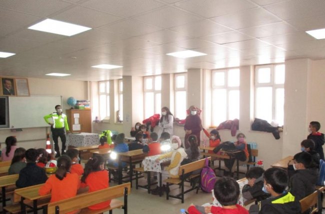 Sarıkamış Trafik Tescil ve Denetleme Büro Amirliği ekipleri, trafik bilincinin geliştirilmesi amacıyla 4 okulda 350 öğrenciye Genel Trafik konularında eğitim verdi.