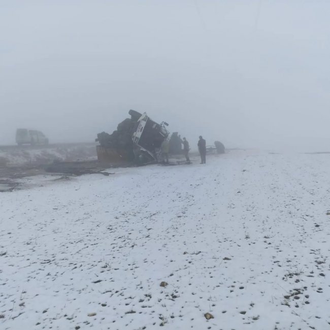 Kaza, Kars’ın Digor ilçesine bağlı Sorguçkavak mevkiinde meydana geldi. Bölgede etkili olan sis, kar yağışı ve buzlanma nedeniyle direksiyon hakimiyetini kaybeden C.T. (65) hakimiyetindeki 19 ACK 147 plakalı tır yolun kenarına devrilerek kaza yaptı.