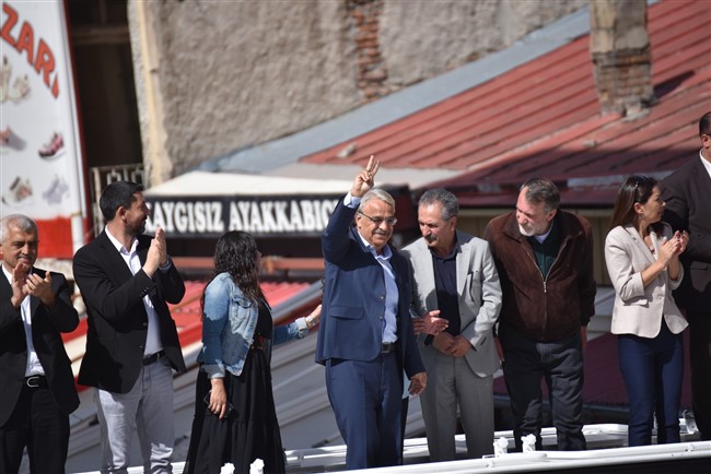 Sancar açıklamasını şöyle sürdürdü: “Bütün diğer muhalefet partilerine da huzurlarınızda çağrı yapıyoruz. Evet, Kürt sorunuyla ilgili sözler söylüyorlar iyi, güzel. Bazen daha da fazlasını söylüyorlar ama daha somut planlara ihtiyaç var. Bu ülkenin somut barış ve çözüm programına ihtiyacı var. Bu ihtiyacı gidermeden halka güzel sözler söyleyerek ya da tabularla klişelerle bu sorun çözülmez. Bu sorun çözülmedikçe de bu ülkede demokrasiyi de adaleti de özgürlüğü de kuramayız arkadaşlar. O nedenle demokratik çözüm ve barış, özgürlük, demokrasi ve adalete eşitliğe giden yolun temelidir. Bunu da başaracağız, hep birlikte başaracağız. İnanın bize güçlerimizi birleştirdikçe çözümü daha da kuvvetli bir şekilde ortaya koyacağız. boşuna demiyoruz çözüm biziz. Çözüm kurduğumuz ittifak ve bunu daha da büyüyecek bir demokrasi bloğudur. Bunu oluşturduğumuzda ne bugünkü rejime ne de eski rejimi yeniden canlandırmak isteyen anlayışlara mahkum olmayacaktır bu ülkenin halkları. Başka bir yol var, başka bir yol mümkün, o yol bizleriz, o yol HDP, o yol Emek Özgürlük İttifakı ve halkların, yoksulların, kadınların, emekçilerin, birliğidir. Başaracağız inanın arkadaşlarım mutlaka başaracağız, mutlaka kazanacağız. Siz de bu güç, bu irade ve bu kararlılık oldukça bize düşen bunun hakkını vermektir. Sözümüz var; sizin iradenizin de, sizin kararlılığınızın da, desteğinizin de hakkını vereceğiz, ülkeye demokrasiyi de, barışı da emek ve özgürlük düzenini de mutlaka getireceğiz. Hep birlikte kazanacağız.”