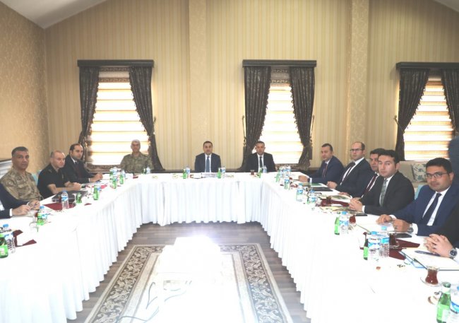 Kaymakamlar ve ilgili kurum yöneticilerinin katılımıyla gerçekleştirilen toplantıda; genel asayiş ve güvenlik konuları ile afet tedbirleri, sınır güvenliği ve düzensiz göçle mücadele konuları değerlendirildi.