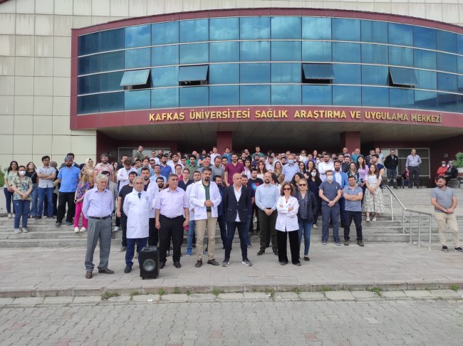 SES adına açıklama yapan Prof. Dr. Barlas Sülü ise, “Her gün bir sağlık emekçisi, doktorlar, hemşire, teknisyen, temizlik elemanı bu ülkede öldürülüyor, hakarete uğruyor. Niye oluyor bunlar, kimler yol açtı bu duruma. Biz inanıyoruz ki sağlık hizmetleri parası olanların değil bu topraklarda yaşayan her bir vatandaşın temel hakkıdır. Bu hak satılamaz. Ancak mevcut iktidar ülkemizde Cumhuriyetin bütün kazanımlarını özelleştirip sattığı gibi sağlık hizmetlerini de özelleştirerek alınıp satılır hale getirdi. Yap-boz haline gelmiş sağlık hizmetleri artık kamu hizmetinden çıkıp iktidarın arkasına sığınmış özel hastanelerde veya yerleşim yerlerinden uzak, hasta garantili şehir hastanelerinde verilir hale geldi. Sonuçta bir tarafta müşteri gözüyle bakılan parası yoksa kırka yakın bölümün olmadığı Kafkas Üniversitesi Sağlık Araştırma ve Uygulama Hastanesi’nde veya Harakani Devlet Hastanesinde beş dakikalık muayene için aylar sonrasına randevu alan, poliklinikler önünde saatlerce sırada bekleyen, ameliyat için aylarca sırada bekleyen ilacını bile cebinden karşılayan, doktor olmadığından dolayı Erzurum, İstanbul, Ankara’daki hastanelerde çözüm arayan bir taraftan da ağır ekonomik koşullar yaşam mücadelesi veren işsiz asgari ücretli emekli ve çalışanlar. Bir tarafta ise biz sağlık çalışanları. Kamu Hastanelerinde, idarenin aymazlığı veya baskılarıyla karşı karşıya kalan, birçok tıbbi cihaz ve eleman eksikliğine karşı insanca yaşayacağı ücret almadan gece gündüz çalışan bizler. Özel Hastanelerde ise hekimlerin giderek işçileştirildiği, istenildiği zaman kapı önüne konulduğu, diğer sağlık çalışanlarının ise şirketlerin insafına bırakıldığı sağlık emekçileri. Oysa bizler sağlık çalışanları ile hasta ve hasta yakınları aynı taraftayız. Çünkü bizler bu ülkenin emekçileriyiz. Biz sağlık hizmetinin parası olanların değil, bir vatandaşlık hak olduğunu savunuyoruz. Oysa sistem kendi politikalarını gizlemek için bilinçli ve sistematik olarak bizleri ayrıştırıp çatıştırmak istiyor. Sağlık emekçilerinin üzerine yıkarak sağlıktaki şiddeti yaratıyor ve tırmandırıyor. Öyleyse yağma yok. Biz diyoruz ki; sağlıktaki sorunların nedeni öldürülen darp edilen hakarete uğrayan sağlık emekçileri değil, sağlık hizmetini bir hak olmaktan çıkarıp özelleştiren, şirketlere teslim eden sizlersiniz. Sağlıktaki şiddetin nedeni de sizsiniz. Bizler öldürülsek de, darp edilsek de, giderse gitsinler deseler de biz yılmayacağız. Kalmaya çalışmaya devam edeceğiz. Kars halkının sağlık sorunlarının çözümü için olanaklarımız ne olursa olsun elimizden geldiğince hizmet vereceğiz. Çünkü biz bu ülkeyi Kars’ı ve Karslıları çok seviyoruz.” ifadesini kullandı.