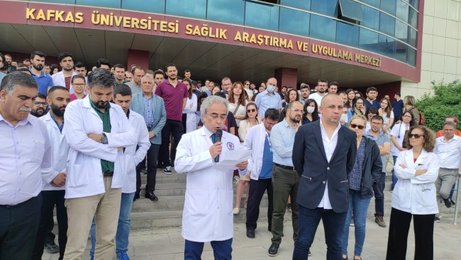 Türk Tabipler Birliği Merkez Komitesi adına açıklama yapan Onur Naci Karahancı, “Bugün yaşanan şiddet vakası tekil bir olay, tek başına değerlendirilecek bir olay olarak eline alınmamalıdır. Bu olay uzun zamandır şiddete karşı verdiğimiz mücadelenin ne kadar acil, ne kadar hayati olduğunu bir kez daha gösteren bir olaydır. Uzun zamandır sağlıkta şiddete karşı bir mücadele yürütüyoruz ve bununla ilgili bir şiddet yasası, şiddet yasa tasarısı sunduk ancak kabul görmedi, yeni getirilen yasa yine eksik kaldı. Son verilerde 2020 yılında 11 bin 900 civarında sağlıkta şiddet “Beyaz Kod” verileri 2022 yılında 29 bin 800’lere varmıştır. İki katını geçmiştir. Bu sene bununla ilgili verileri istediğimizde Sağlık Bakanlığı tarafımıza vermemiştir. Yalnızca bu değil, sağlık emekçileri, hekimler Kovid’ten bu yana canlarıyla ödedikleri bir süreç yaşıyorlar. Ancak ne yazık ki ne özlük haklarımızda ne yaşadığımız zorluklarda hiçbir adım atılmıyor, görmezden geliniyor. Yaşamımızla, hayatımızla bunun bedelini ödedik, hala da ödeme riski yaşıyoruz ve halen kulaklar tıkalı. Aralık ayından beridir özlük haklarımızda yapılacak denilen düzenlemeler halen yapılmadı. Neden yapılmadı? Neden geri çekildi? Neden gelmedi? Halen bilmiyoruz. Bunca mücadelemize rağmen yaptığımız anket çalışmasında hekimlerin yüzde 84’ünün en az 1 kez fiziksel şiddete uğradığı görülüyor. Bu oran sözlü şiddette çok çok daha artıyor. Artık hekimler sözlü şiddeti, şiddetten saymaz hale geldi. Bunca vurdum duymazlık, bunca tepkisizlik hekimleri, bizleri sürekli risk altında bırakıyor. Hep birlikte tekrar tekrar sesleniyoruz; artık hekimlerin bunca yaşadığı zorluklara kulağınızı tıkamayın, bizleri görün. Hekim göçlerinde rekor kırıyoruz, eskiden genç arkadaşlarımız giderken şimdi akademisyenlerimiz, hocalarımız da gidiyor. Bundan dolayı birçok ilde kendi üniversitemiz de dahil olmak üzere hekim bulamıyoruz. Bunlar artık görmezden gelinecek durum değil. Lütfen ses verin, lütfen bizi görün, bu yaşadığımız son olsun diyoruz.” dedi.