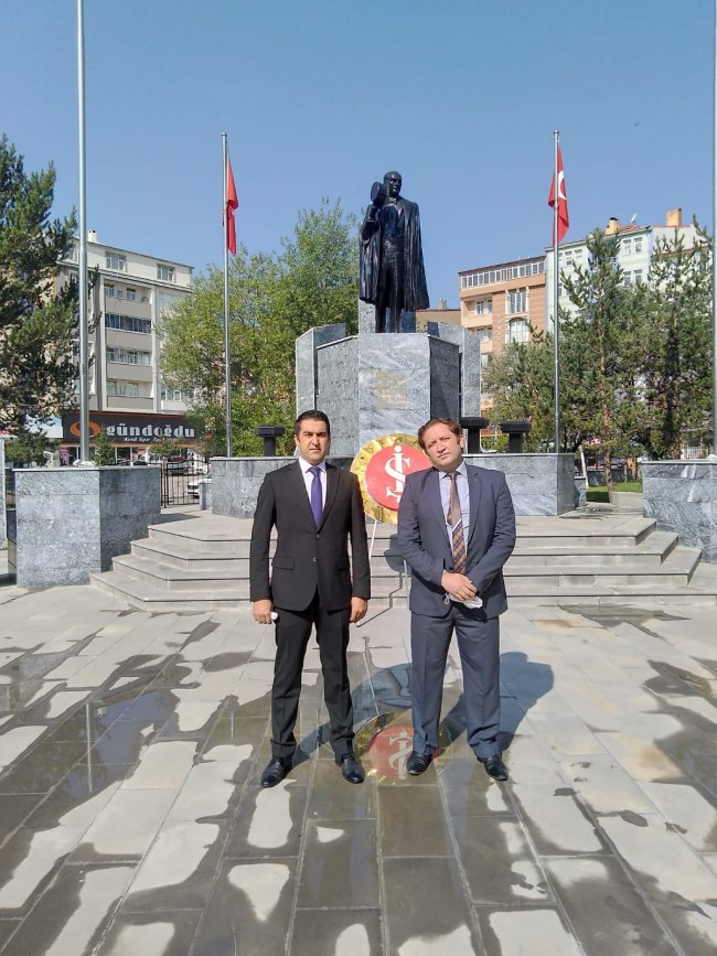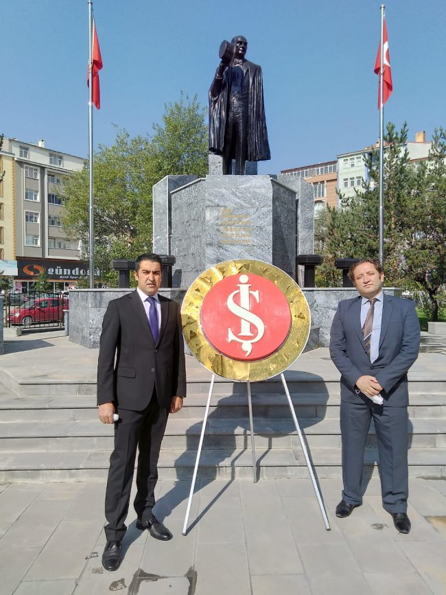 Türkiye İş Bankası Kars Şubesi çalışanları, 97. kuruluş yıl dönümü nedeniyle Hükümet Konağı önünde bulunan Atatürk Anıtına çelenk koydu.