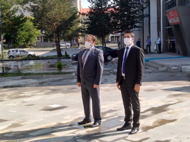 Hükümet Konağı önünde bulunan Atatürk Anıtı'na İş Bankası yetkilileri Barış Kalacı ve Muzaffer Yiğit’in çelenk sunmasıyla başlayan kutlama, başta Türkiye Cumhuriyeti Kurucusu Mustafa Kemal Atatürk, silah arkadaşları ve bu vatan için canlarını vermiş aziz şehitler için 1 dakikalık saygı duruşu ile devam etti.